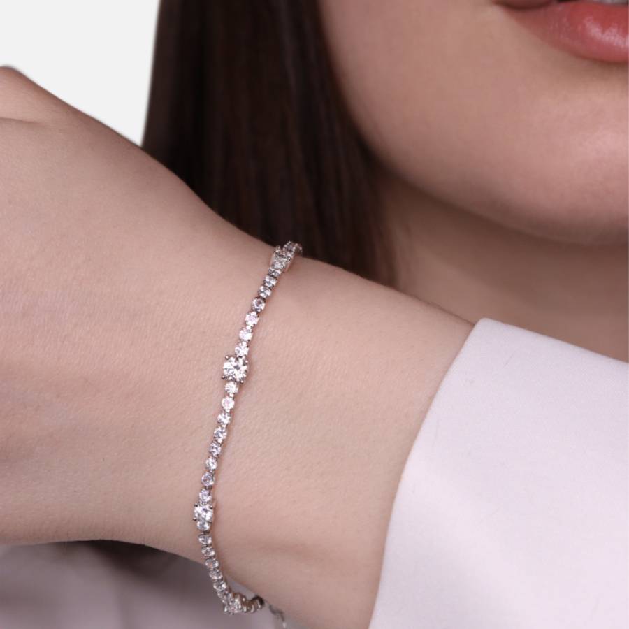 Bracciale tennis con zirconi. Chiusura regolabile.